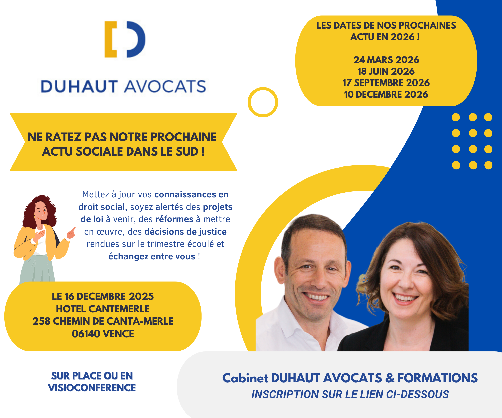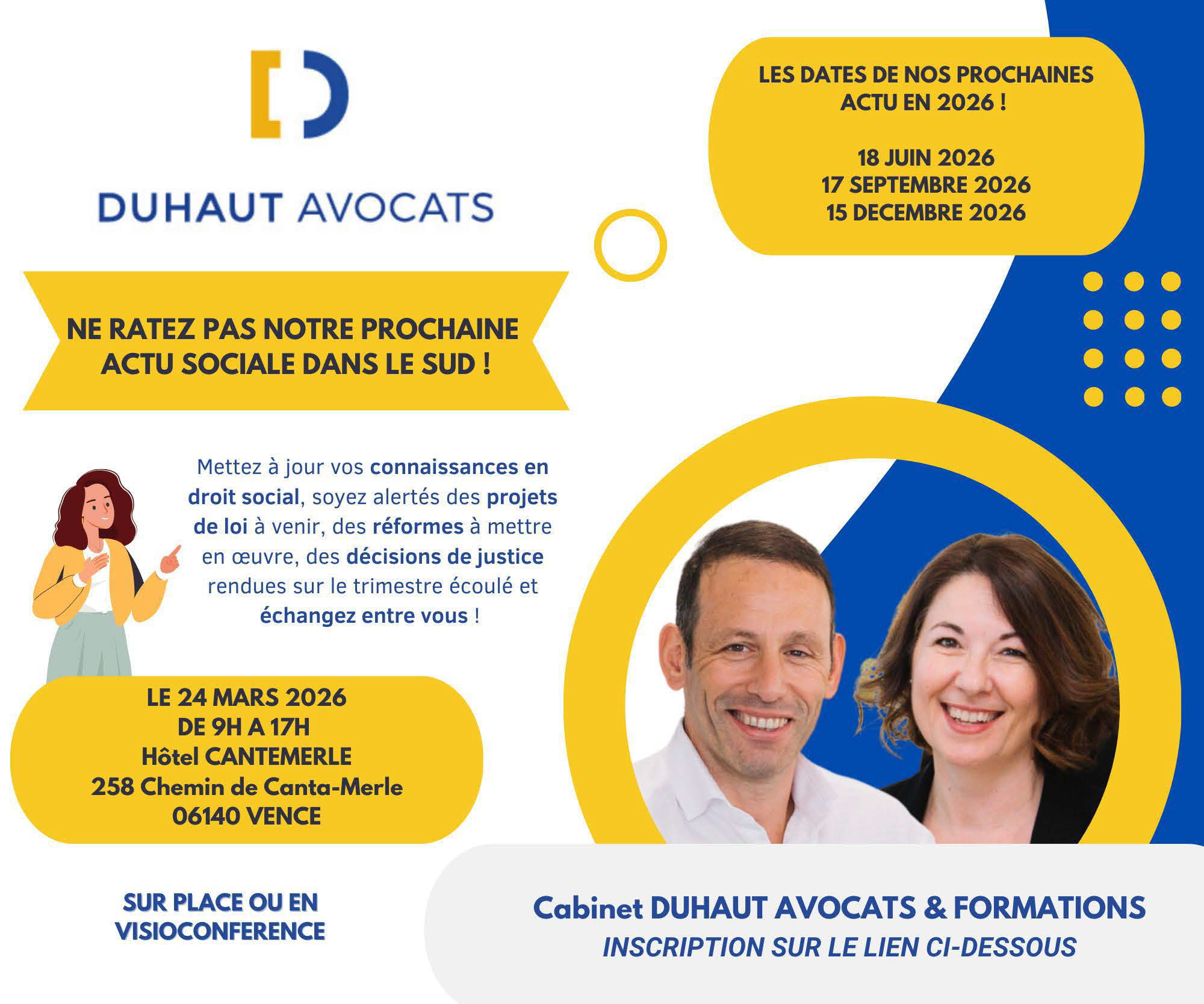 - l’Actu sociale trimestrielle : cette formation se déroule chaque trimestre sur une journée et comprend une présentation de l’actualité législative, règlementaire et jurisprudentielle.