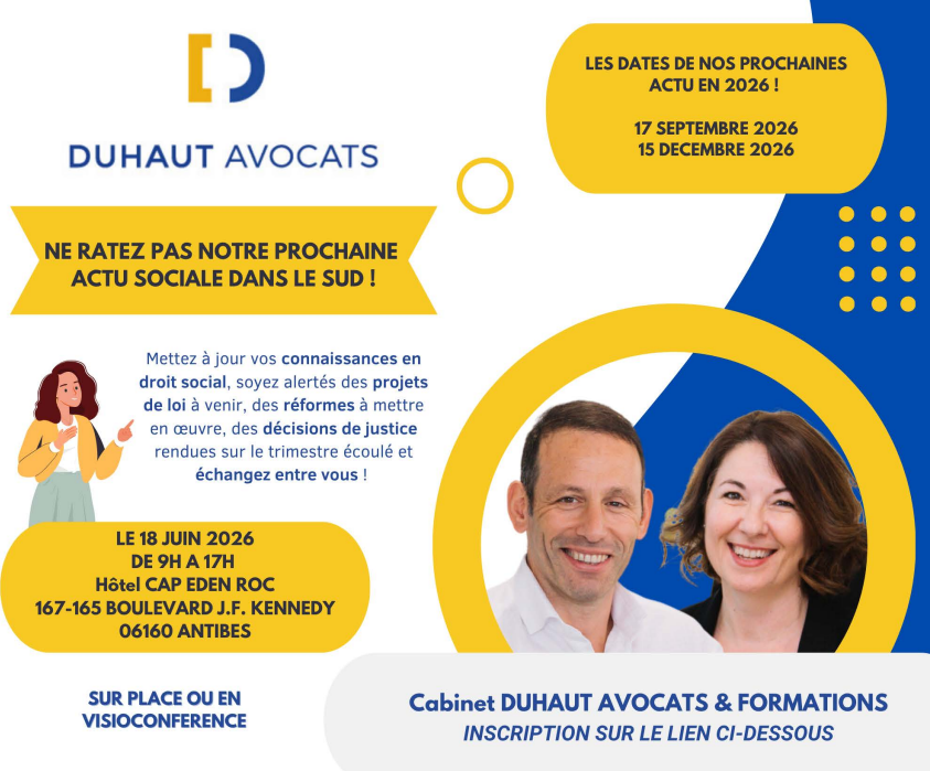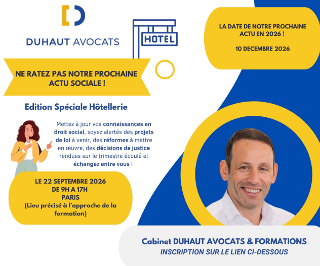 Depuis mars 2019, l’Actu sociale trimestrielle par DUHAUT AVOCATS, c’est 17 stagiaires en moyenne par journée avec un taux de réinscription de 94% - des formations spécifiques mises en place lors des grandes réformes intervenant en droit social ;